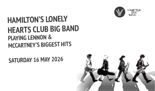 It’s The Beatles, but like you’ve never heard them before! Join Hamilton Big Band as we pay tribute to the story of John, Paul, George, and Ringo, with jazz-tinged covers of Blackbird, Yesterday, Lady Madonna, and many, many more. Expect big hits, hidden gems, and everything in between, as we take you on a journey through a brief and sordid history of immense talent, weight of stardom, and fame-fuelled hubris.
